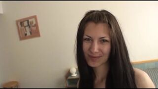 Amateur German brunette sprayed with jizz after hard fuck